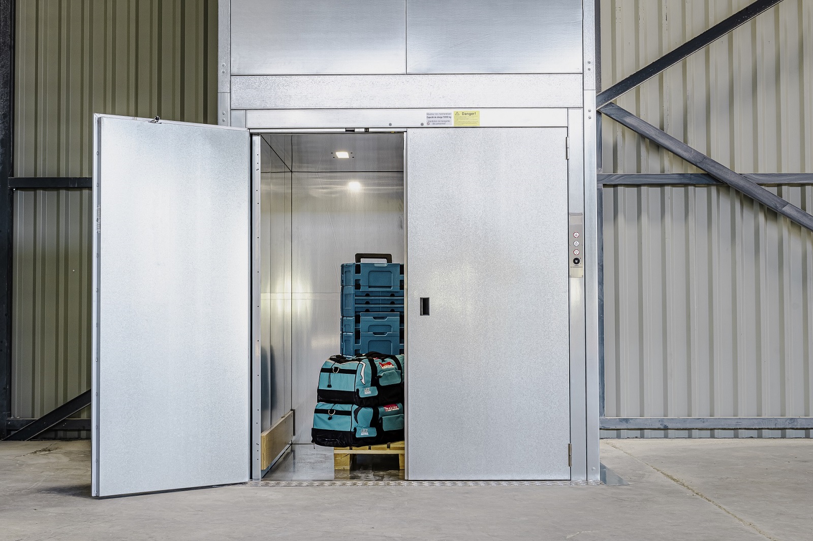Véritable innovation technique, le monte-charge accompagné dispose à la fois d'une structure autoportante et d'une cuvette réduite pour simplifier sa mise en place et permettre son installation en un temps réduit.