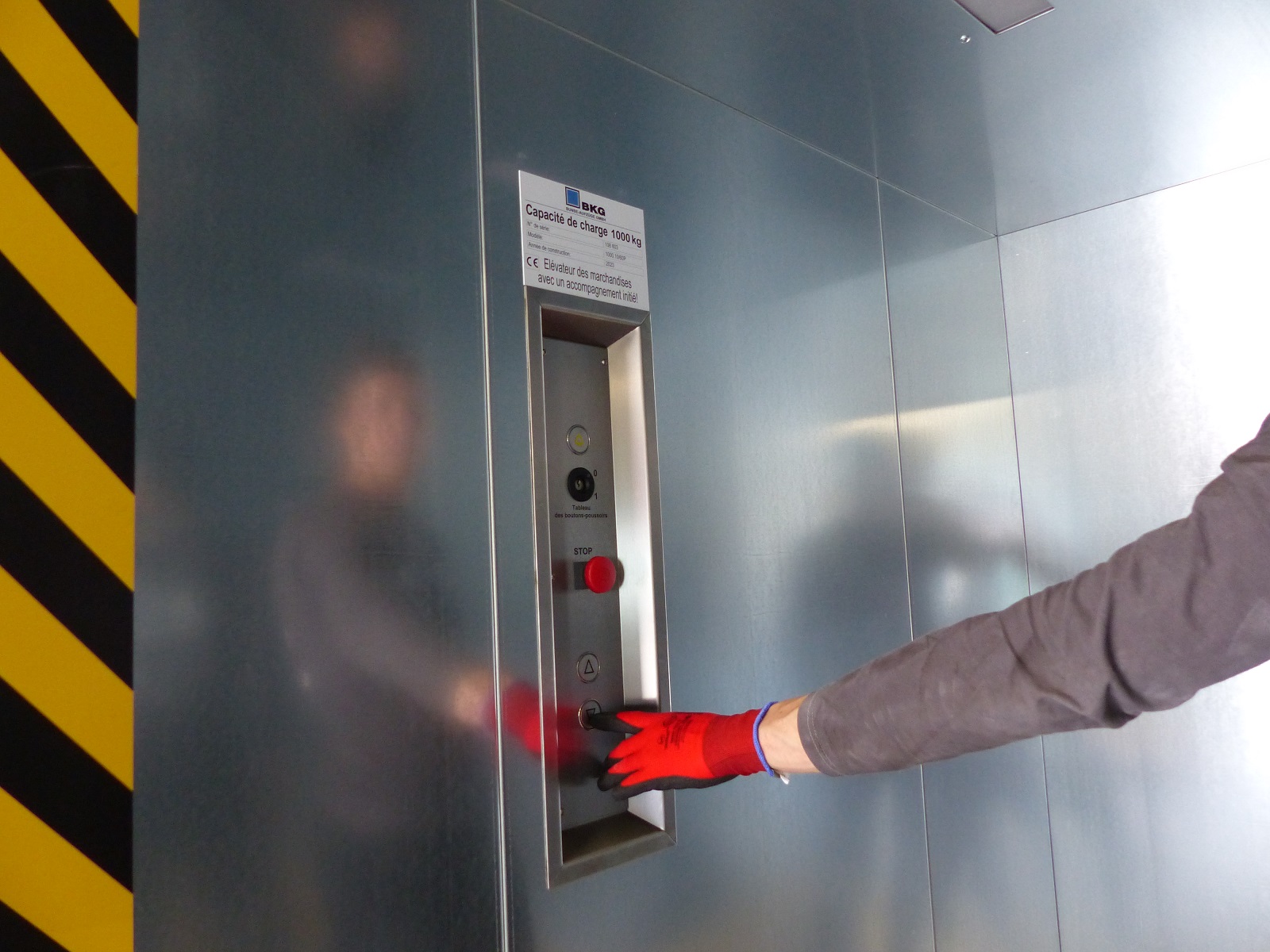 La boîte à boutons en cabine autorise une personne qualifiée à accompagner les charges en toute sécurité.